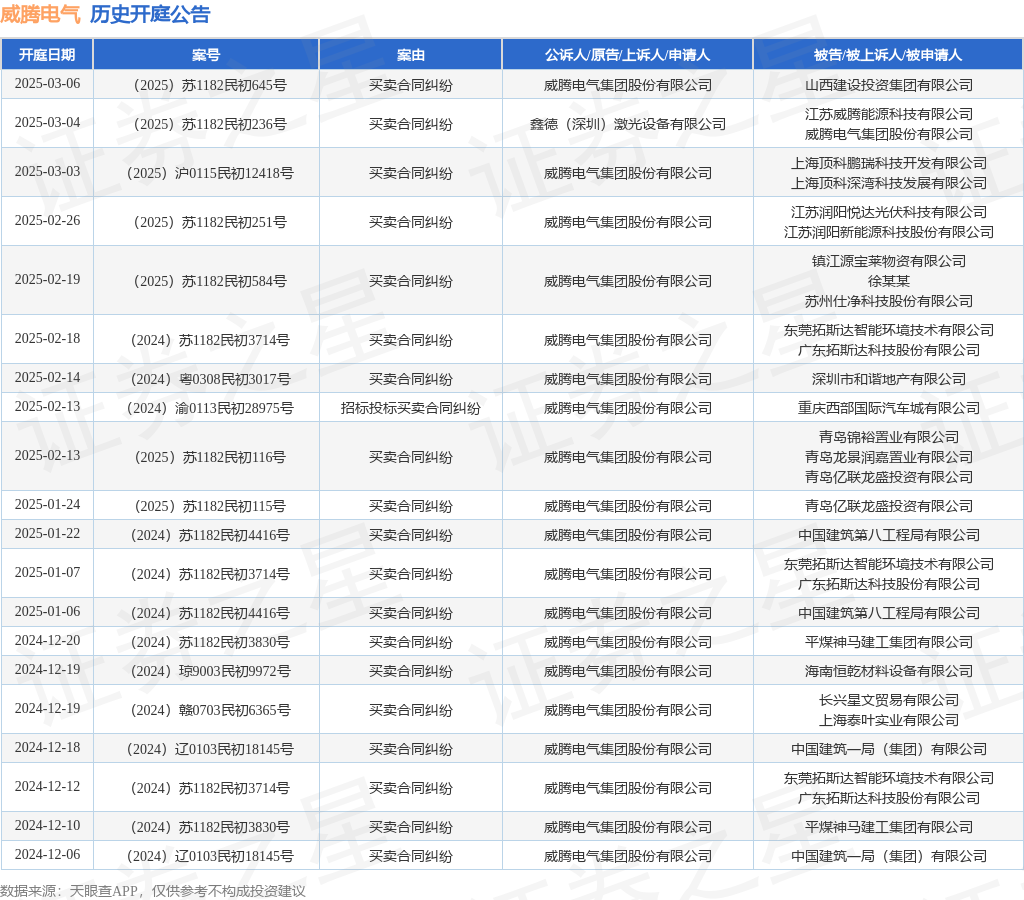 本站消息,根据天眼查APP显示,近日公布了一则威腾电气集团股份有限公司作为原告/上诉人的开庭公告,详细内容如下: